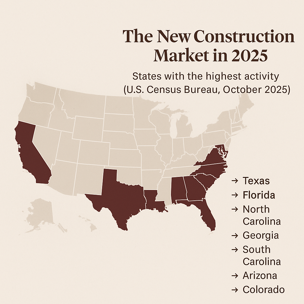 This guide brings together data updated through September and October 2025, using sources such as the U.S. Census Bureau, NAHB, NAR, Redfin, Realtor.com, and Freddie Mac.